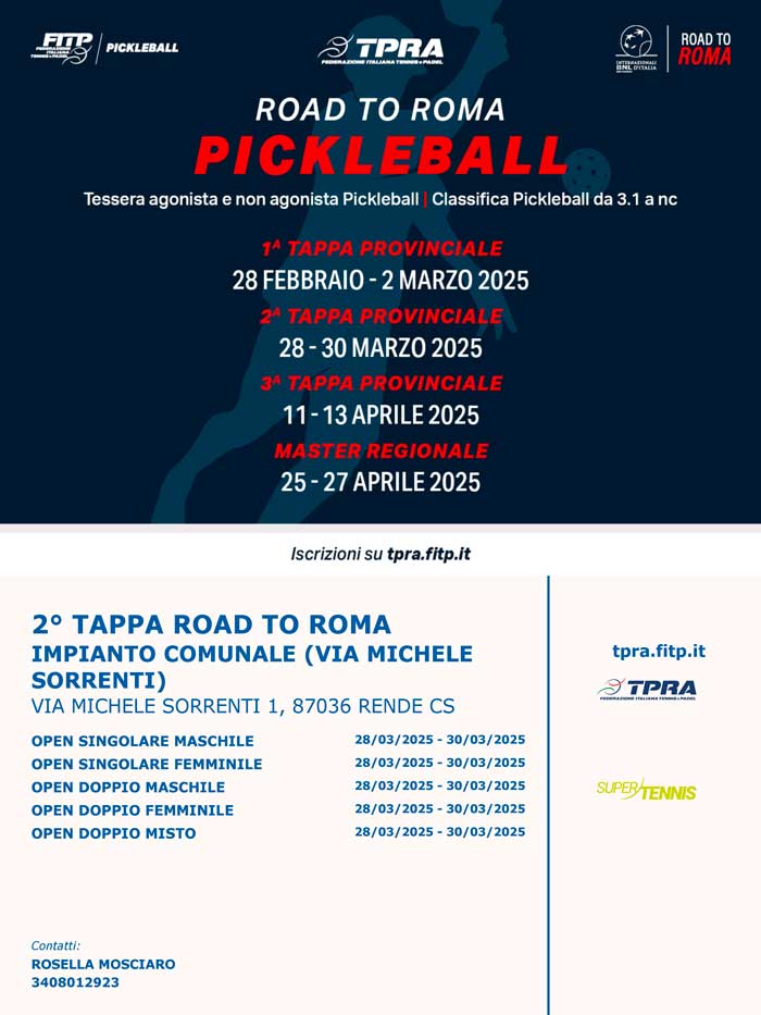 Continua con la 2ª Tappa provinciale “Road to Rome 2025” , il circuito nazionale di Pickleball che selezionerà i migliori giocatori per il Master Finale al Foro Italico di Roma , durante gli Internazionali BNL d’Italia 2025.