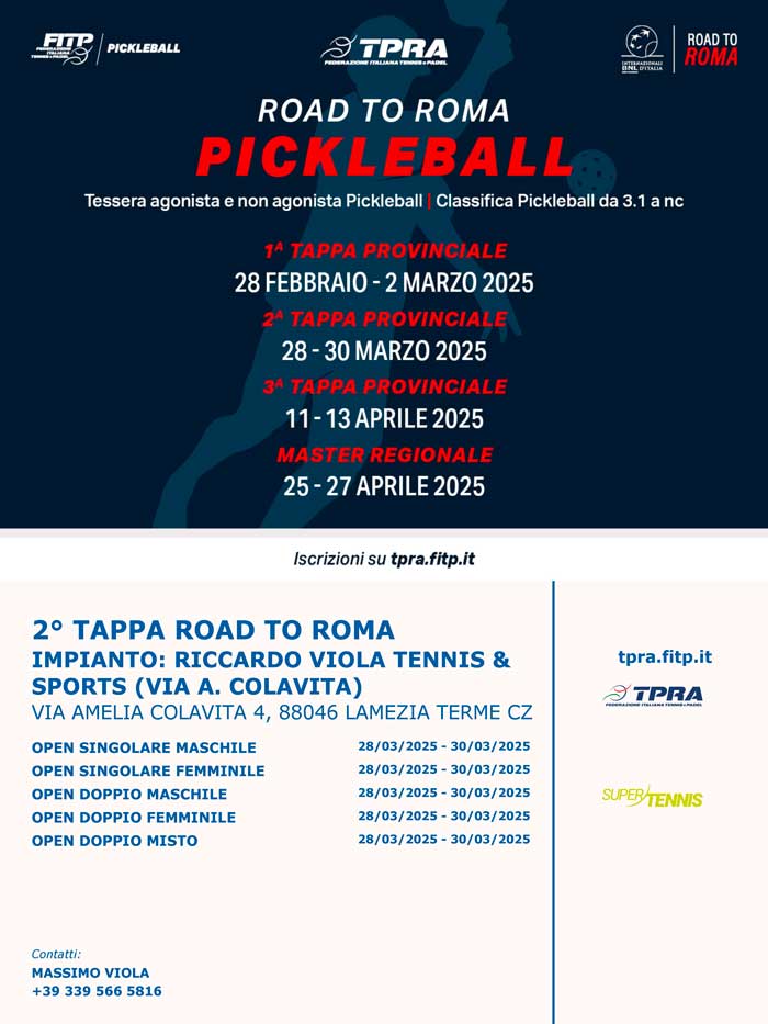 Per iscrizioni: tpra.fitp.it sezione Pickleball