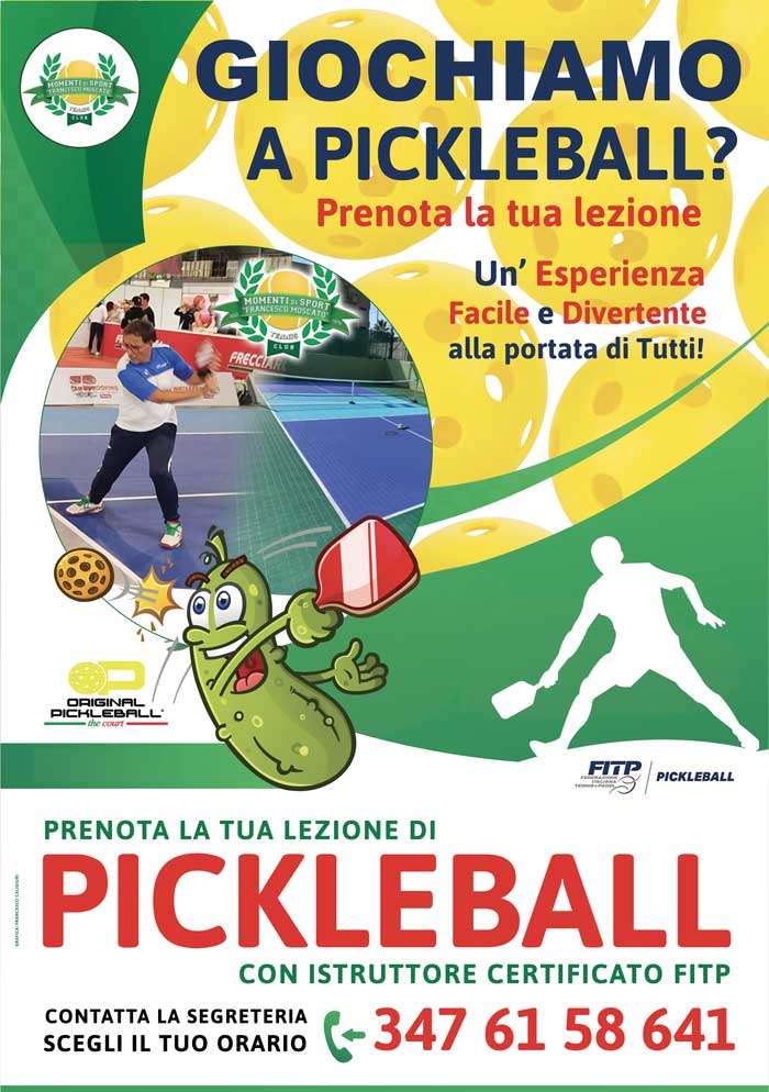 Momenti di Sport “Francesco Moscato” è entusiasta di offrirti corsi e lezioni di Pickleball, guidati dal tecnico Francesco Caligiuri, uno tra i primi istruttori certificati FITP (Federazione Italiana Tennis e Padel) in Calabria!