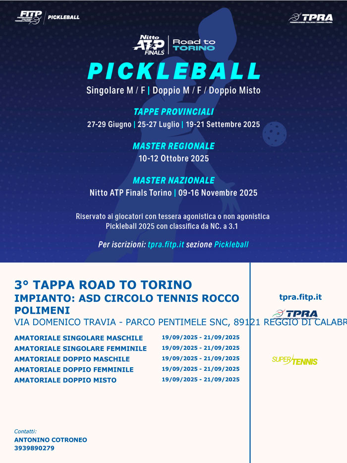 Un’opportunità da non perdere per chi desidera vivere da protagonista l’energia della community più frizzante del panorama sportivo italiano. I riflettori sono puntati, le racchette pronte: che la corsa verso Torino continui. Ricordiamo che  il Circuito “Road to Torino 2025” è riservato a tutti i tesserati FITP Pickleball con classifica compresa da NC a 3.1.